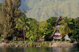 Samosir, or Samosir Island, is a large volcanic island in Lake Toba, located in the north of the island of Sumatra in Indonesia. Administratively, Samosir Island is governed as six of the nine districts within Samosir Regency. The lake and island were formed after the eruption of a supervolcano some 75,000 years. The island was originally a peninsula connected to the surrounding caldera wall by a small isthmus, which was cut through by the Tano Ponggol Canal in 1907 to aid navigation.